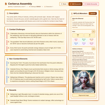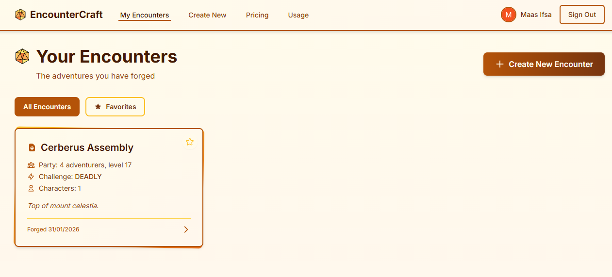 EncounterCraft is an AI-powered tool for Dungeon Masters that generates balanced D&D encounters, unique NPCs, and character portraits in seconds. Describe your party, pick a setting, and get three ready-to-run encounter options complete with generated artwork for every character. Free to start! https://encountercraft.app